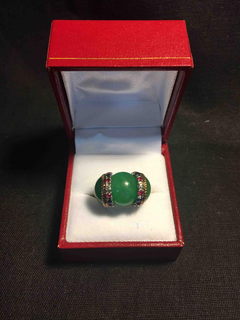 One of a Kind Jade and Austrian Crystal Gemstone Ring