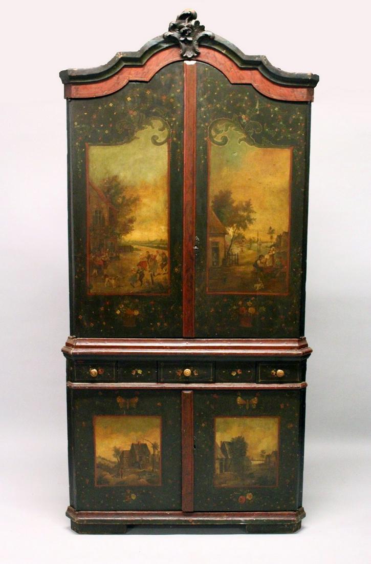 A GOOD 18TH CENTURY CONTINENTAL PAINTED PINE CORNER