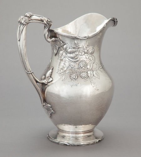 A GORHAM SILVER REPOUSSÉ RASPBERRY WATER PITCHER