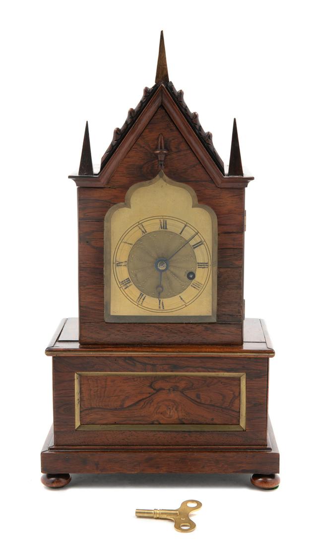 A Gothic Revival Brass Mounted Mantel Clock LA