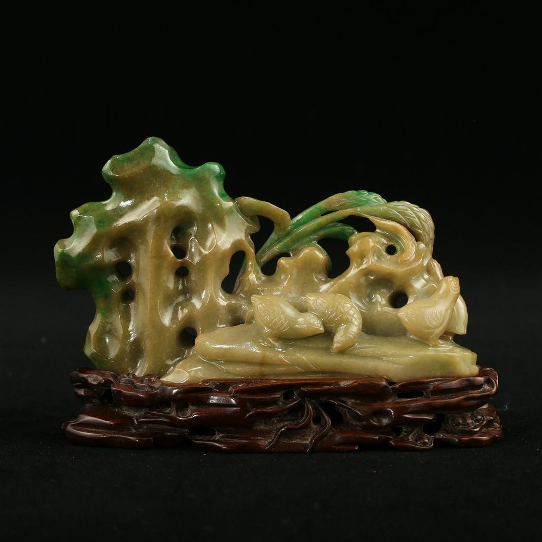 A GREEN JADE 'BIRDS' BOULDER