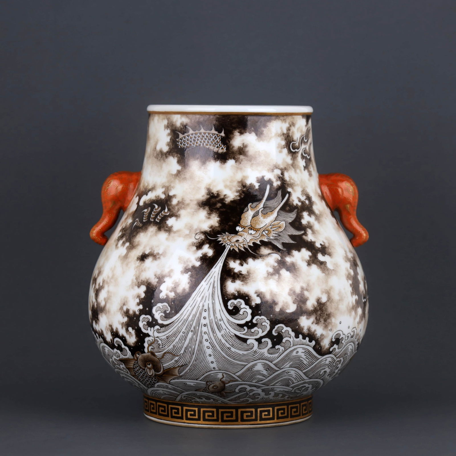 A GRISAILLE GILT-DECORATED 'DRAGON' VASE