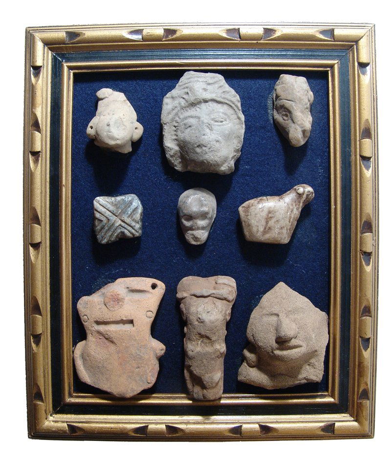 A group of 9 nicely framed Precolumbian ceramic objects