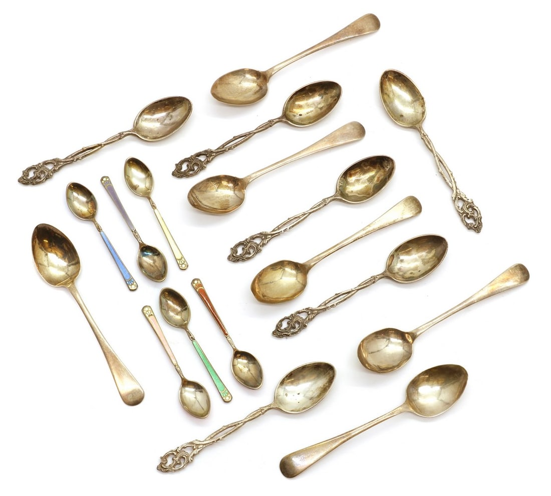 9PC LOT OF STERLING SILVER, 22 T.O.W.Mar 07, 2026Lot of sterling silver spoon sets. To include: 1) Towle set of 12 teaspoons. 6.2 ozt. 2) Durgin setMar 01, 2026Group of Fourteen (14) Assorted Sterling Silver Serving Pieces and Salt SpoonsMar 07, 2026Antique Sterling Spoons & Server Assortment5 days LeftSeventy two English spoons with Others2 days LeftSterling Silver Estate Assorted Flatware6 days LeftS. Kirk & Son Repousse pattern sterling silver 13pc. flatware and serving pieces, 14.630ozt. 73 days LeftA COLLECTION OF SILVER FLATWAREMar 03, 2026Fancy Sterling and Silver Plate Flatware: Gorham Versailles, Reed & Barton Francis I, Etc. 10 PCS1 day LeftGroup of Sterling and Coin UtensilsFeb 26, 2026Silver Gilt Chased Teaspoons (A Set of Six, with Craft Details)4 days LeftSet of Six Sterling Silver TeaspoonsFeb 28, 2026Collection of antique sterling and silver flatware and serving pieces; Large Norwegian 830 Silver3 days LeftSterling Flatware Including Mustard & Salt SpoonsMar 07, 2026Misc. Sterling and Coin Silver Flatware, 55 pcs.Feb 26, 2026TOWLE EL GRANDEE STERLING FLATWARE SET.Feb 25, 2026