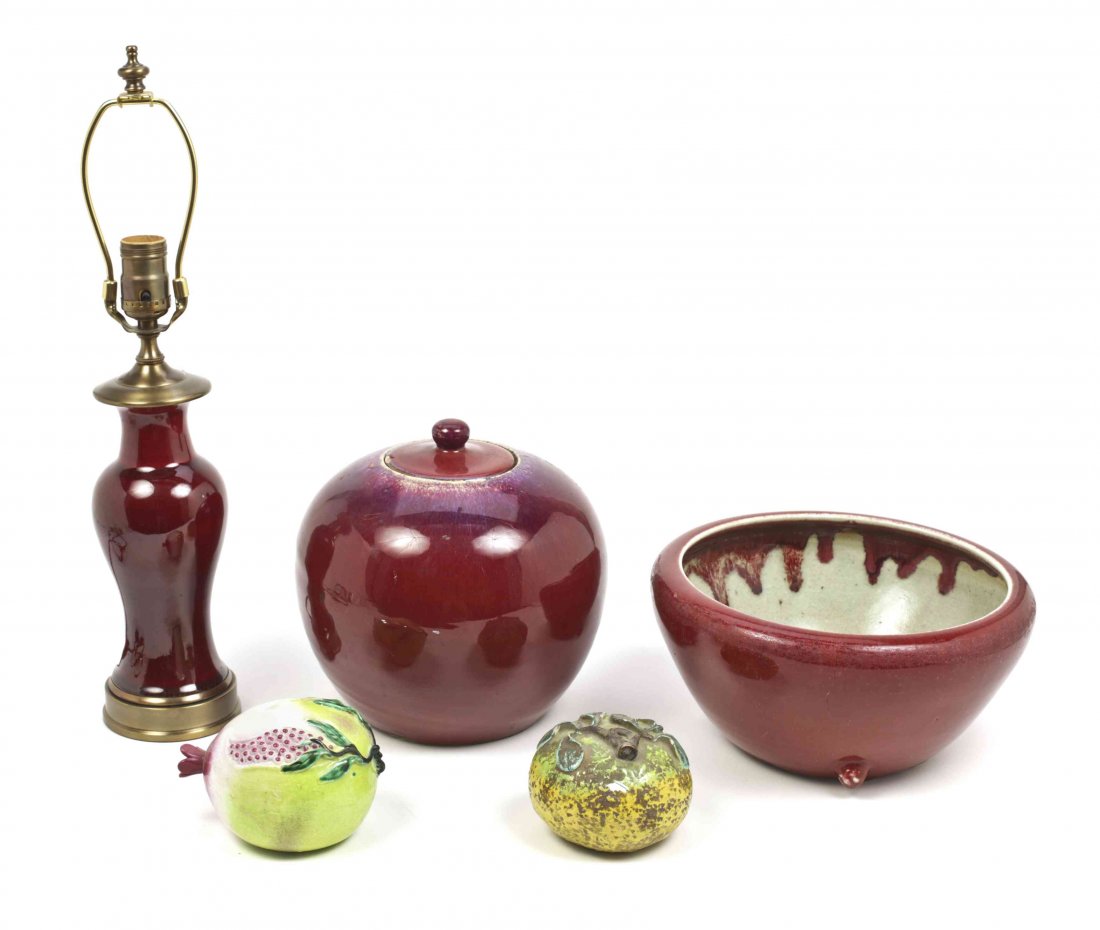 Lot of 4 Studio Pottery Vessels & Chinese Funerary UrnMar 21, 2026Lot of European Perfume/Scent Bottles and American Pressed Glass TumblersMar 21, 2026Vallauris, France, three ceramic bowls in brightly colored glazes.Vallauris, France, ceramic coffee service for two consisting of a total of seven parts. LusterFour Chinese Glazed Earthenware & Porcelain Vases3 days LeftGroup of Asian Miniature Porcelain Table Articles3 days LeftCollection of Small Scale Turned Wood and Metal Jars and VesselsMar 20, 2026Three Chinese Porcelain Table Lamps22 hrs Left4 Chinese Monochrome Porcelains; 1 SEA Celadon5 days LeftChinese & Japanese Vases, Bookends and MoreArt Pottery Vessels Including Heager, Bennington, General Ceramics, CarillonApr 12, 2026Seven Chinese & Japanese Studio Pottery Vessels3 days LeftFive Chinese Glazed Earthenware Vases and a Censer3 days LeftGroup of Ten Blown Glass and Glazed Earthenware Table Articles22 hrs LeftAssortment of Vintage Ceramics ft. Italian & Asian CeramicsGroup of Japanese Satsuma Table Articles3 days Left