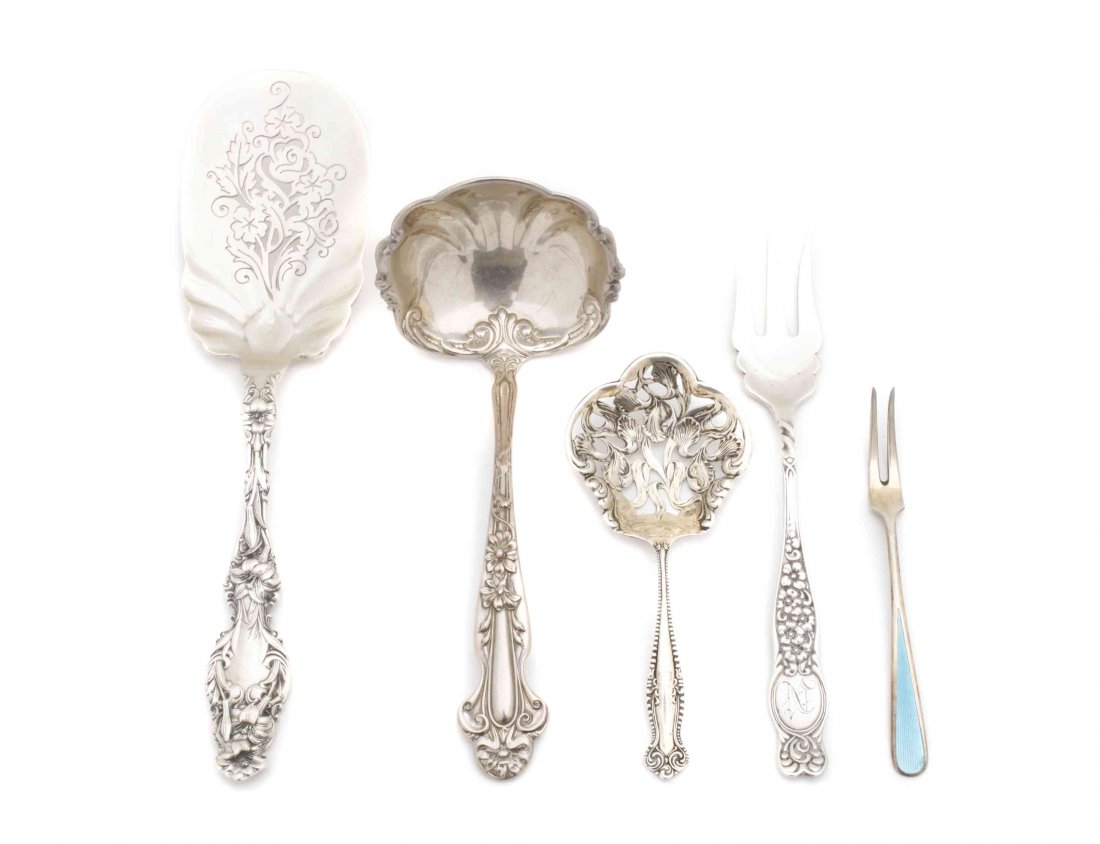 A Group of Five Silver Flatware Articles, Length of