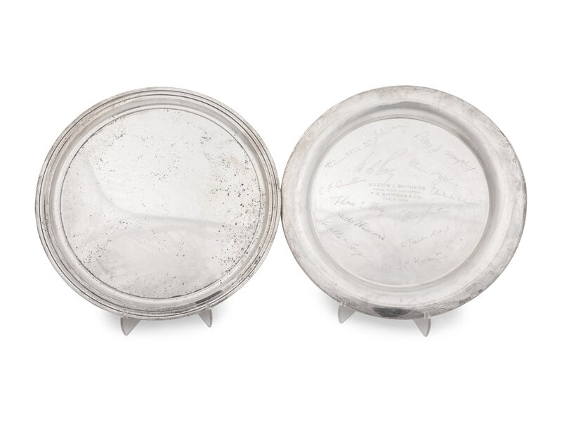 PEWTER PLATES LOT OF 3 VINTAGE ANTIQUE279 Lots AwayLot 3 Pewtarex+ Serving Trays USA7 hrs LeftLot 2 International Silver & Oneida Serving Trays7 hrs LeftPair of Dominick & Haff Normandie Sterling Silver Plates3 days LeftVintage Silverplate Relish Tray & Pedestal Bowl.Mar 19, 2026Two Vintage Silverplate Serving PlatesMar 17, 2026A Pair of Electroplated Serving Trays by Kent Silversmith & International3 days Left2 Vintage Footed Oval Kent Silversmith Silver Plated Trays BJul 24, 2025Silverplate Tea Service with Extra TrayMar 06, 2026LARGE SILVER PLATE SERVING TRAYMar 05, 2026Large Collection of Silver Plate Serving Ware & Trays3 days LeftGrouping of Six Silver Plate Serving TraysMar 07, 2026Pair of Sterling Silver Dishes2 days LeftGrouping of Six Silverplate Serving Trays, 20th CenturyMar 07, 2026Silver Plated Serving Platters, One Covered - 18:Mar 08, 2026Two American sterling silver circular trays6 days Left