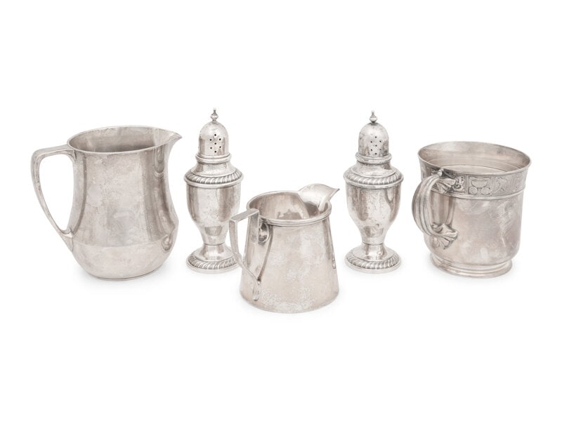 Lot of 5 Silver Plate, incl. George Gebelein of Boston4 days LeftLot of sterling silver tableware. Various handled baskets and dishes, all except for one withoutMar 01, 2026Vintage Pewter Tableware Lot: John Somers, Wilton Columbia, Empire, KS5 days LeftSterling Silver Estate TablewaresFeb 24, 2026Pewter and Sterling Serveware [202 grams]Feb 25, 2026Eight Sterling Silver Miniature Urn From Cups4 days Left5 pieces of sterling silver tableware. Largest 9in. 25.4 ozt total weight.Mar 01, 2026(8) STERLING SILVER WEIGHTED CANDLE HOLDERS6 days LeftFour silver plated bar articlesMar 03, 2026Sterling and Silver Plate Estate TablewaresFeb 24, 2026Vintage Silver Plate Tableware CollectionMar 05, 2026Collection Various Sterling Silver Weighted Tables WaresFeb 28, 2026(9) STERLING SILVER WEIGHTED CANDLE HOLDERS6 days LeftSterling Silver Hollowware AssortmentFeb 24, 2026A Collection of Sterling, Silverplate and Copper Desk and Table Articles3 days LeftA Vintage Set of 5 Pieces Silver-Plated Tea/Coffee3 days Left