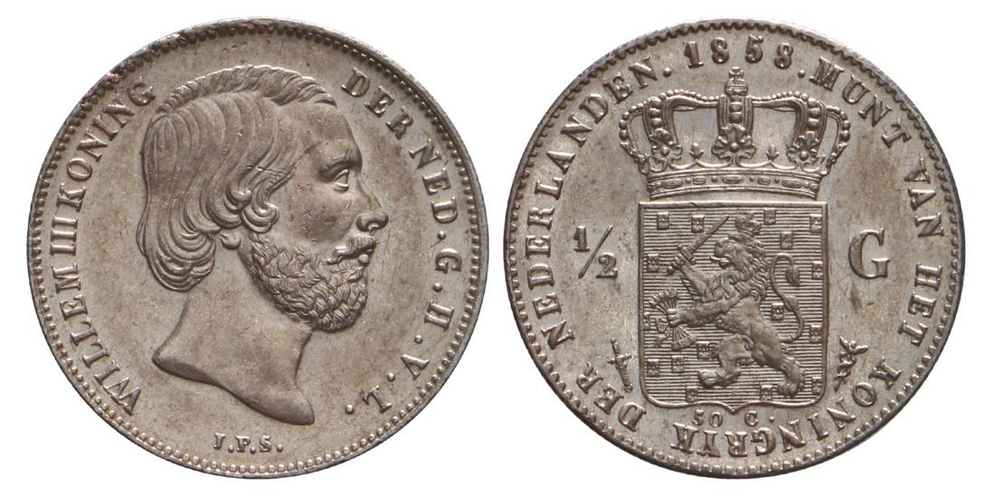 ½ Gulden Willem Iii 1858. Fdc .