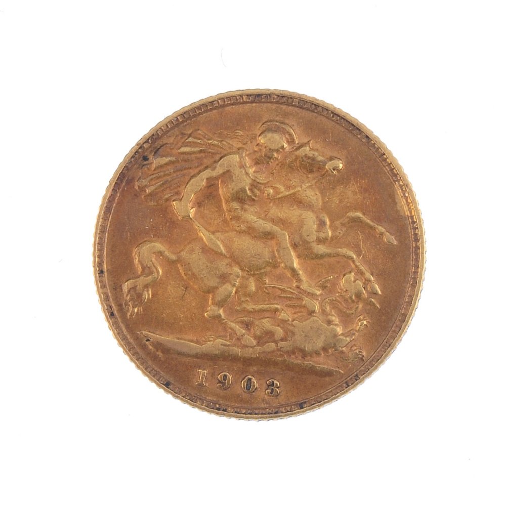 A half-sovereign, dated 1903. Weight 3.9gms. Overall