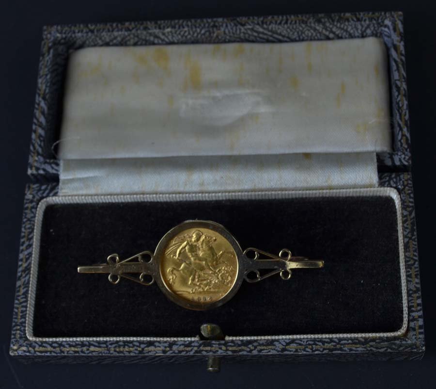 A half sovereign dated 1912, mounted as a bar brooch,