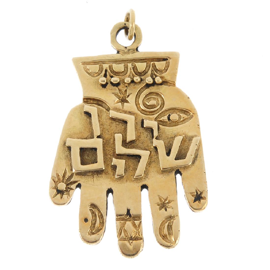 A hand pendant. Designed as a stylised hand, with