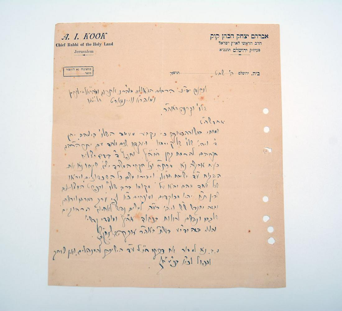 A handwritten blessing from the Raya Kook “with