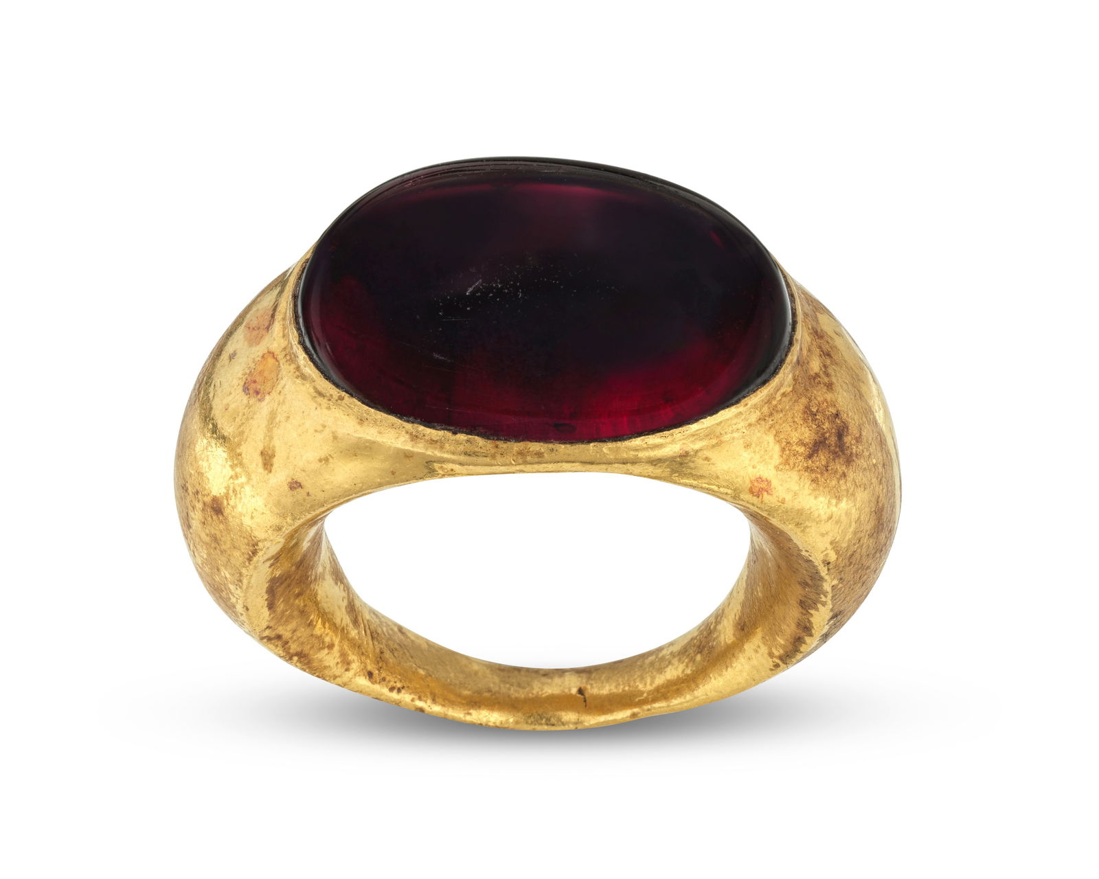 A Hellenistic gold and cabochon garnet ring