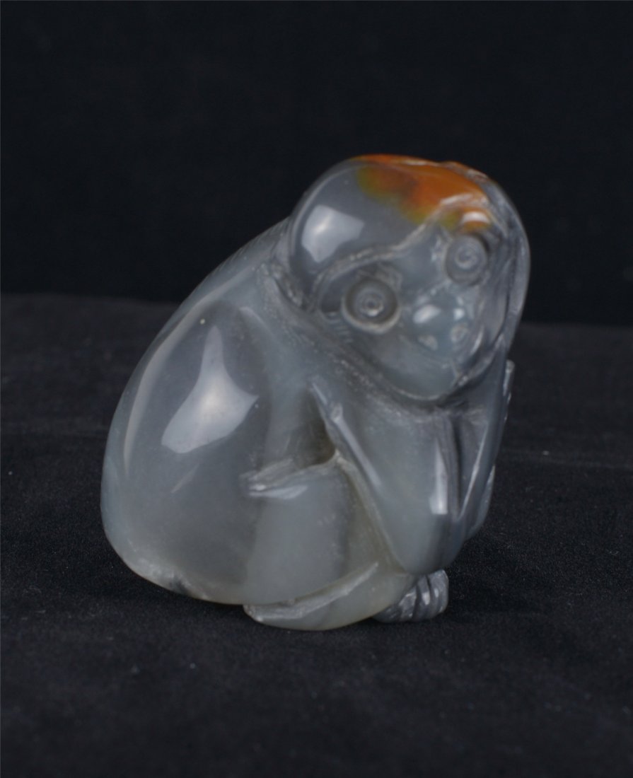 A HETIAN CELADON JADE 'MONKEY' ORNAMENT