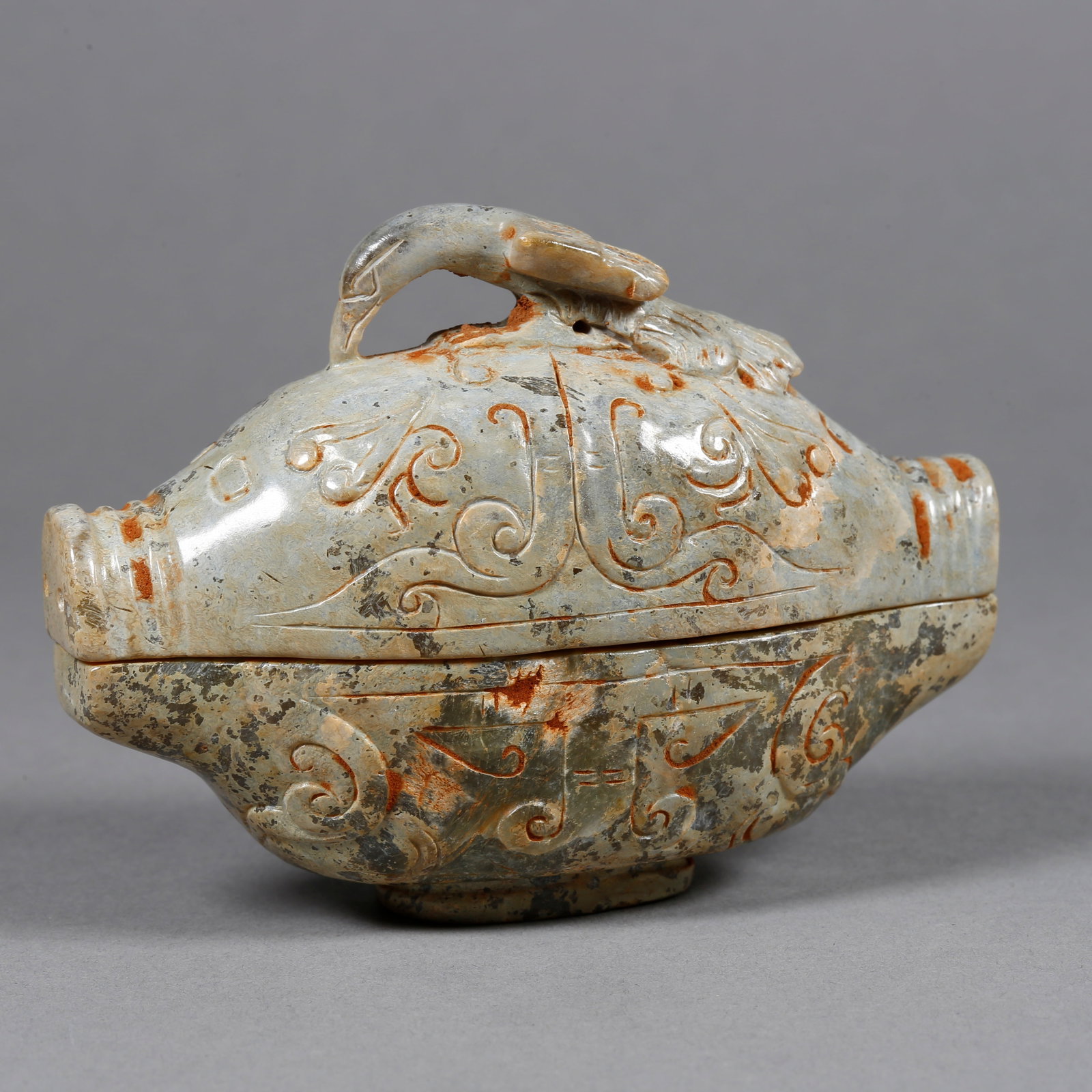 A HETIAN JADE CARVED BEAST-FACE PATTERNED COVERED BOX
