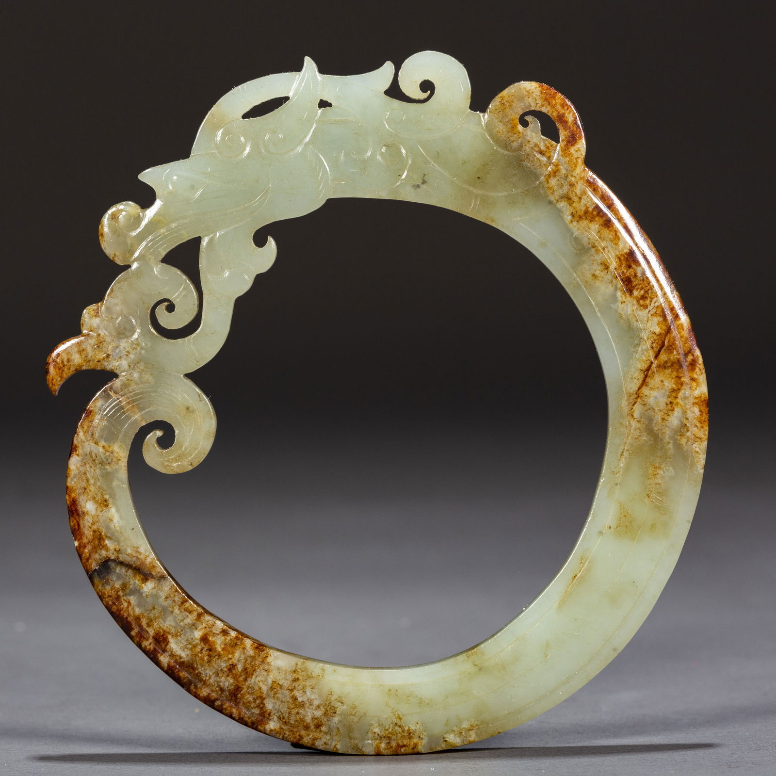A HETIAN JADE DRAGON-SHAPED RING.
