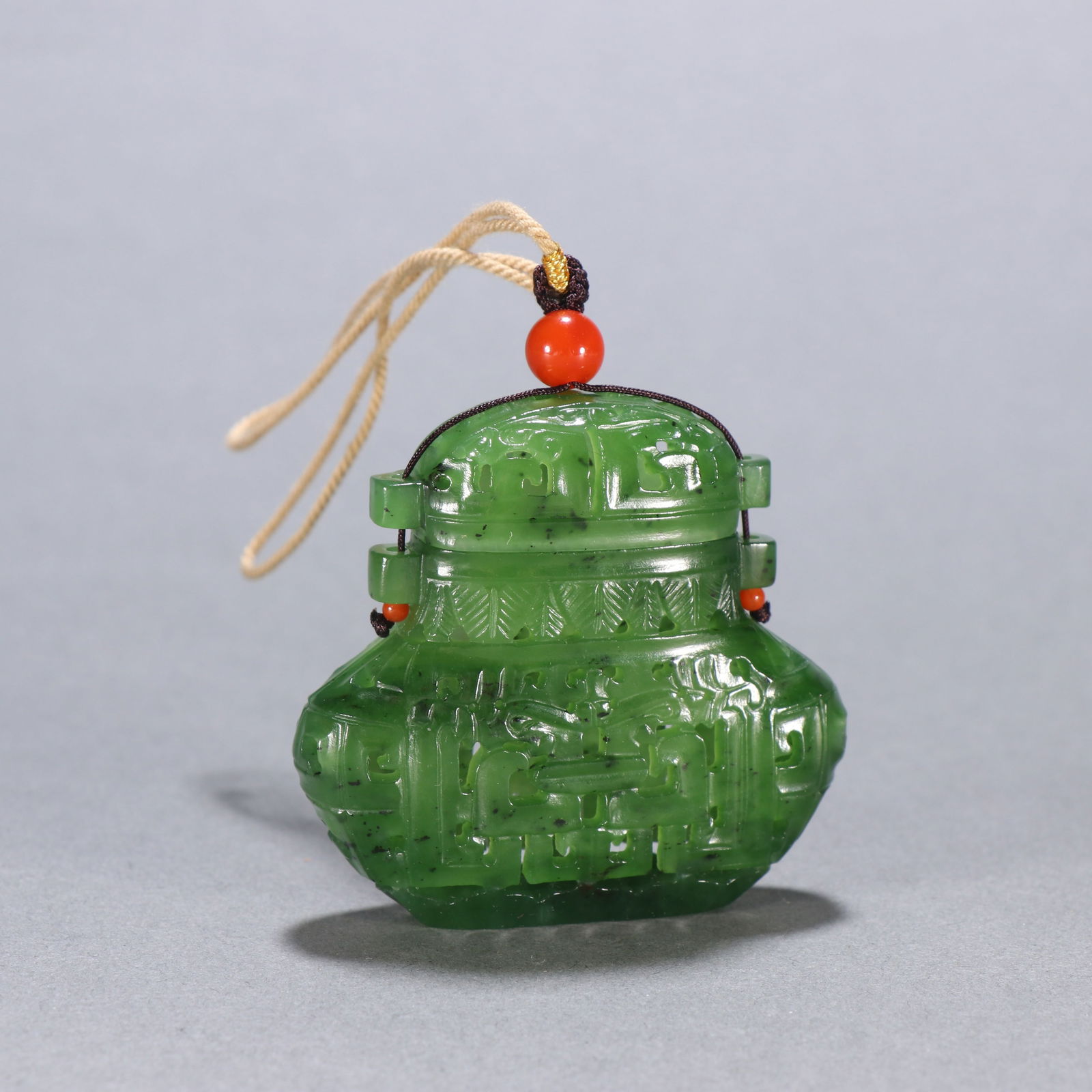 A HETIAN SPINACH-GREEN JADE SACHET