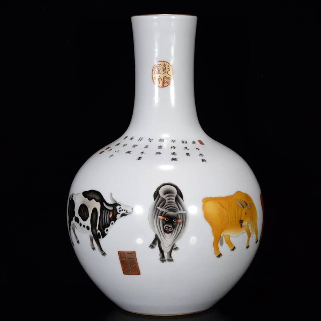 A Huge Enamel Buffalo Pattern Vase?With Poem