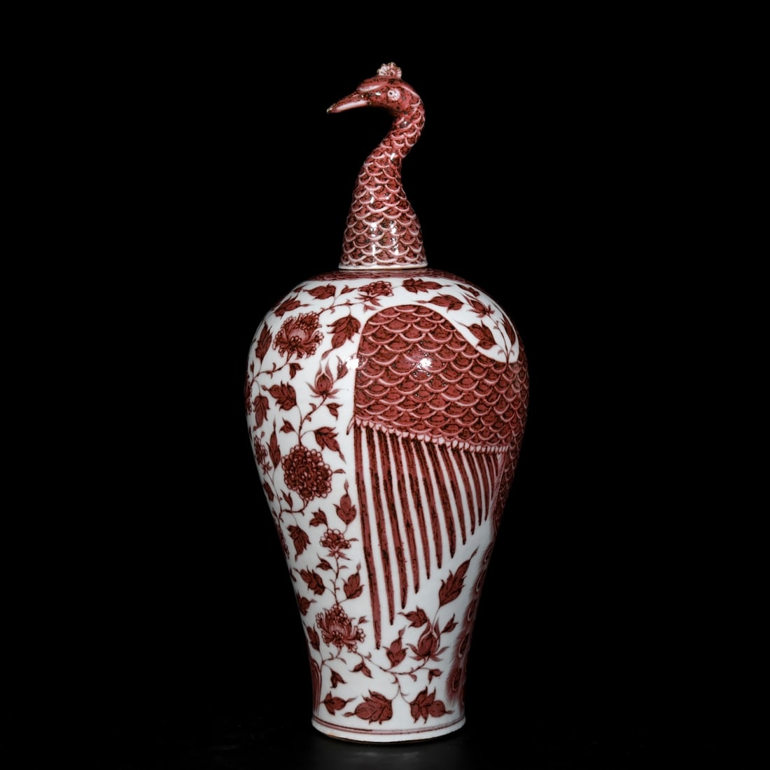 A Huge Underglaze-Red Peacock and Peony Pattern Bottle