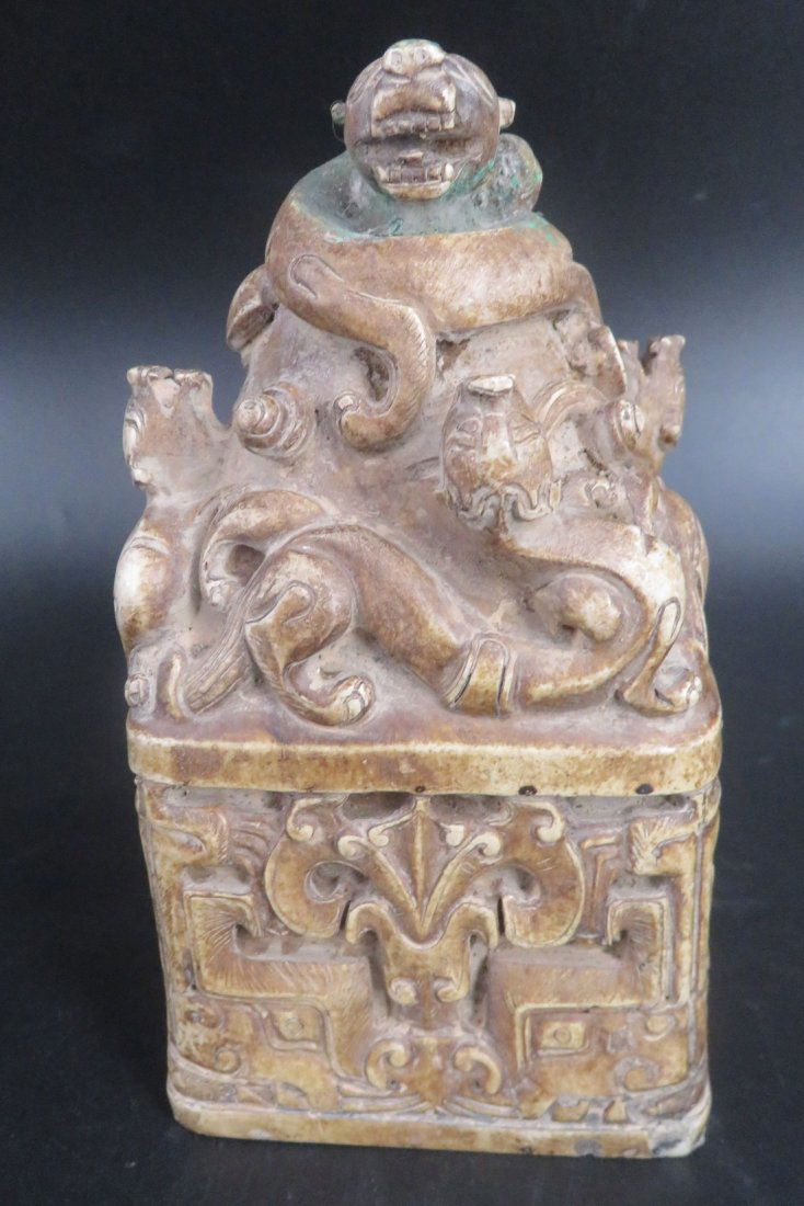 Chinese Tianhuang Stone Hand Carved Fortune Dragon Seal StatueA POLYCHROME PAINTED DRAGON SEALMar 01, 2026Ancient Jade Double Dragon Beast Face VaseMar 04, 2026An Elaborate Bronze 'Dragon& Auspicious Cloud' Lion-Handled CenserFeb 28, 2026Shoushan Stone Dragon SealMar 06, 2026A CARVED ALOESWOOD CHENXIANG BEAST SEALMar 01, 2026Pre-Ming Dynasty Hetian Jade Vase with Dragon Motif, Beast Handles, Gold Traces, and Gemstone InlayFeb 28, 2026A Chinese Hardstone Carving of a Mythical Beast, 20th Century, 13FD2 days LeftA ARCHAIC JADE SQUARE EWER WITH FOUR BEASTS, LOTUS, AND CRANE MOTIFSFeb 21, 2026Shoushan Stone Chi Dragon Plate Pine SealMar 06, 2026A Chinese Libation Cup with Qianlong Mark6 days LeftAn Exquisite White Jade Beast-Face Pattern With Inscription VaseFeb 24, 2026An Exquisite White Jade Beast-Face Pattern Double-Ears Tripod VaseFeb 24, 2026A Chinese Square-based Anicent-framing Lidded Myth-beast Fortune Censer4 days LeftA ARCHAIC JADE EWER WITH DRAGON MOTIFSMar 05, 2026HAN DYNASTY HETIAN JADE CUP INLAID WITH GOLD AND GEMSTONESFeb 27, 2026