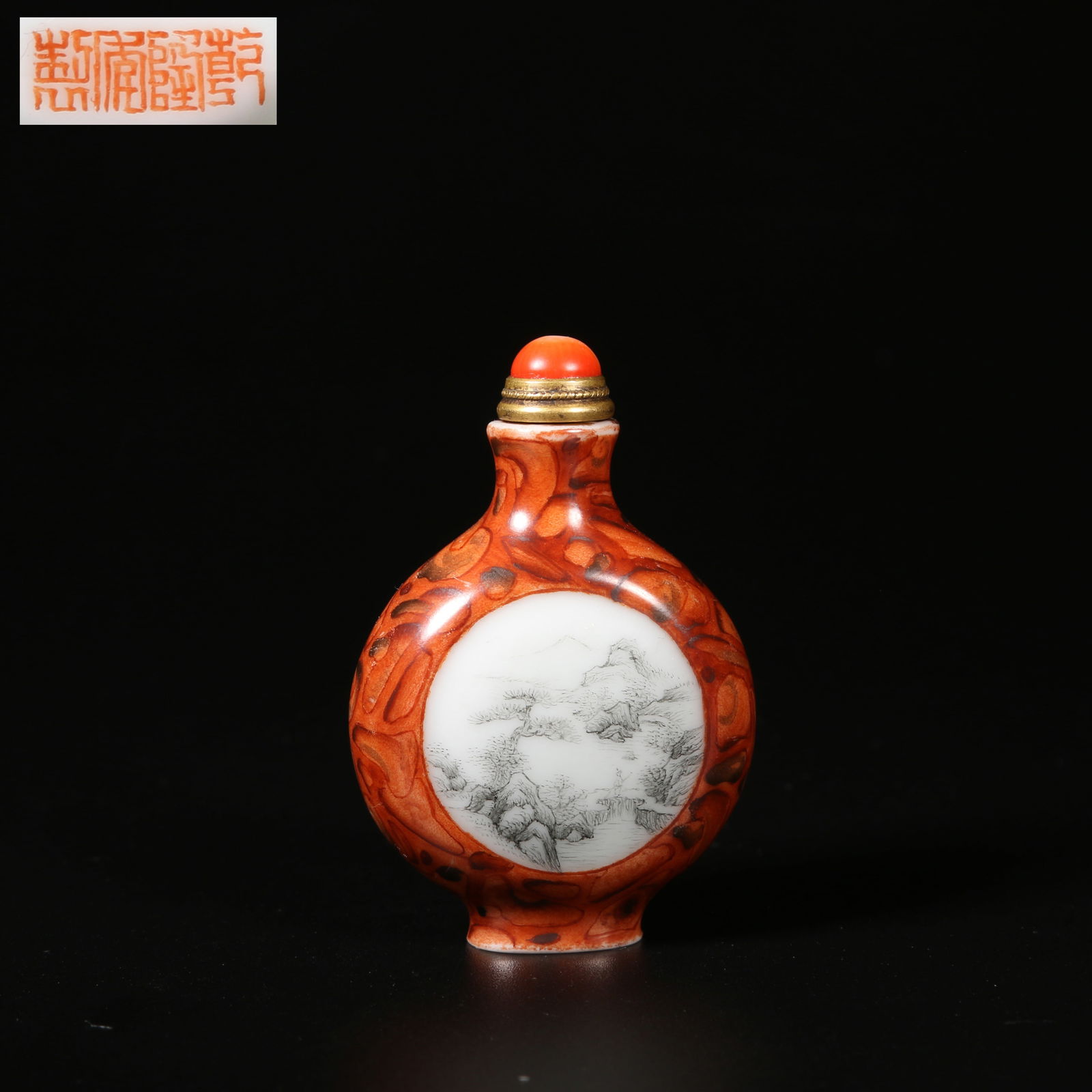A INK COLOR LANDSCAPE PATTERN SNUFF BOTTLE