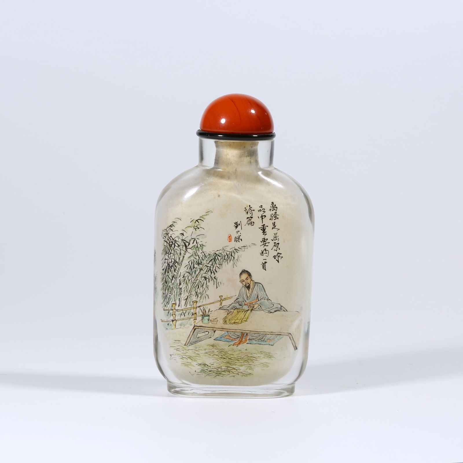 A INSIDE-PAINTED GLASS SNUFF BOTTLE WITH SCHOLAR DESIGN