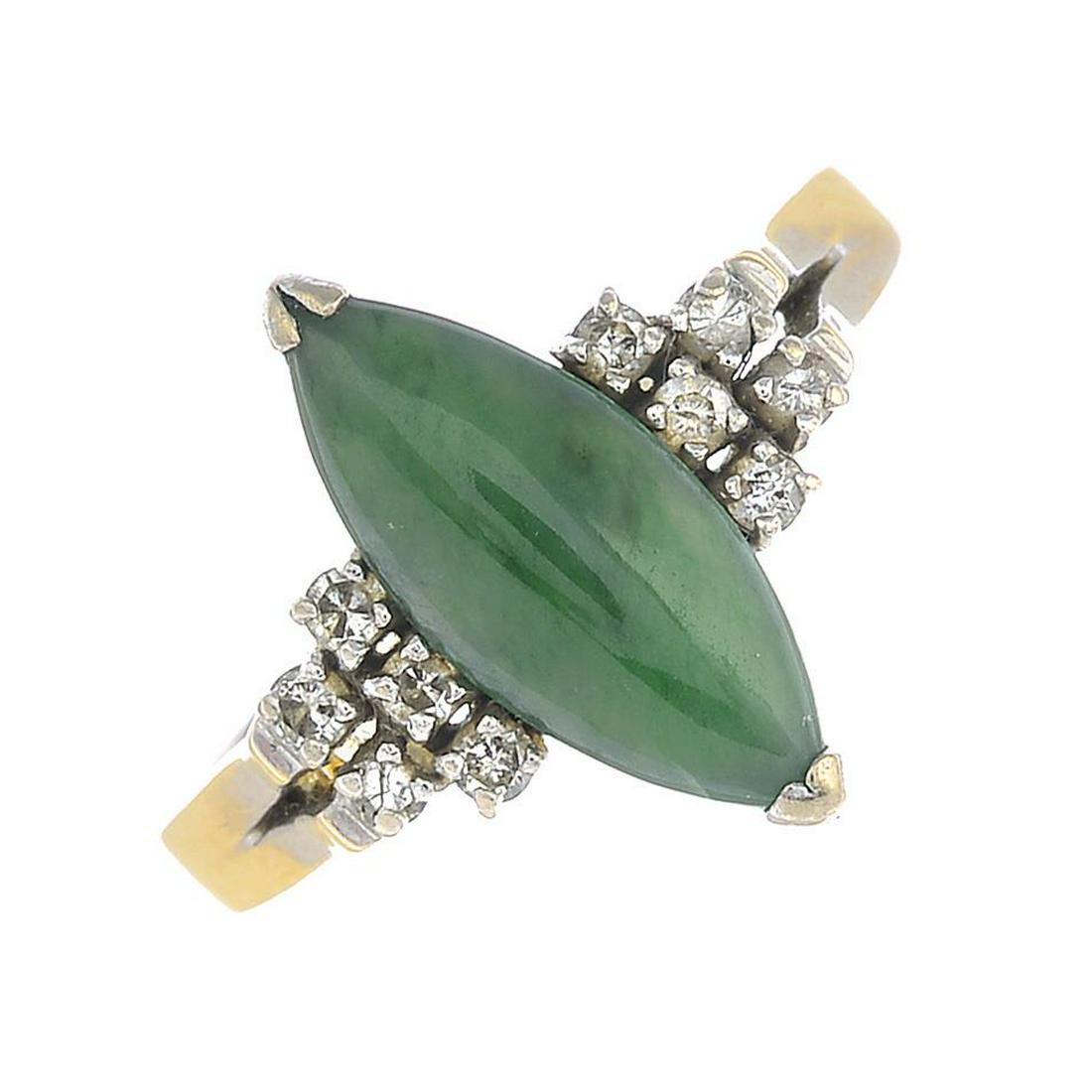 A jade and diamond ring.Jadeite calculated weight 2cts,