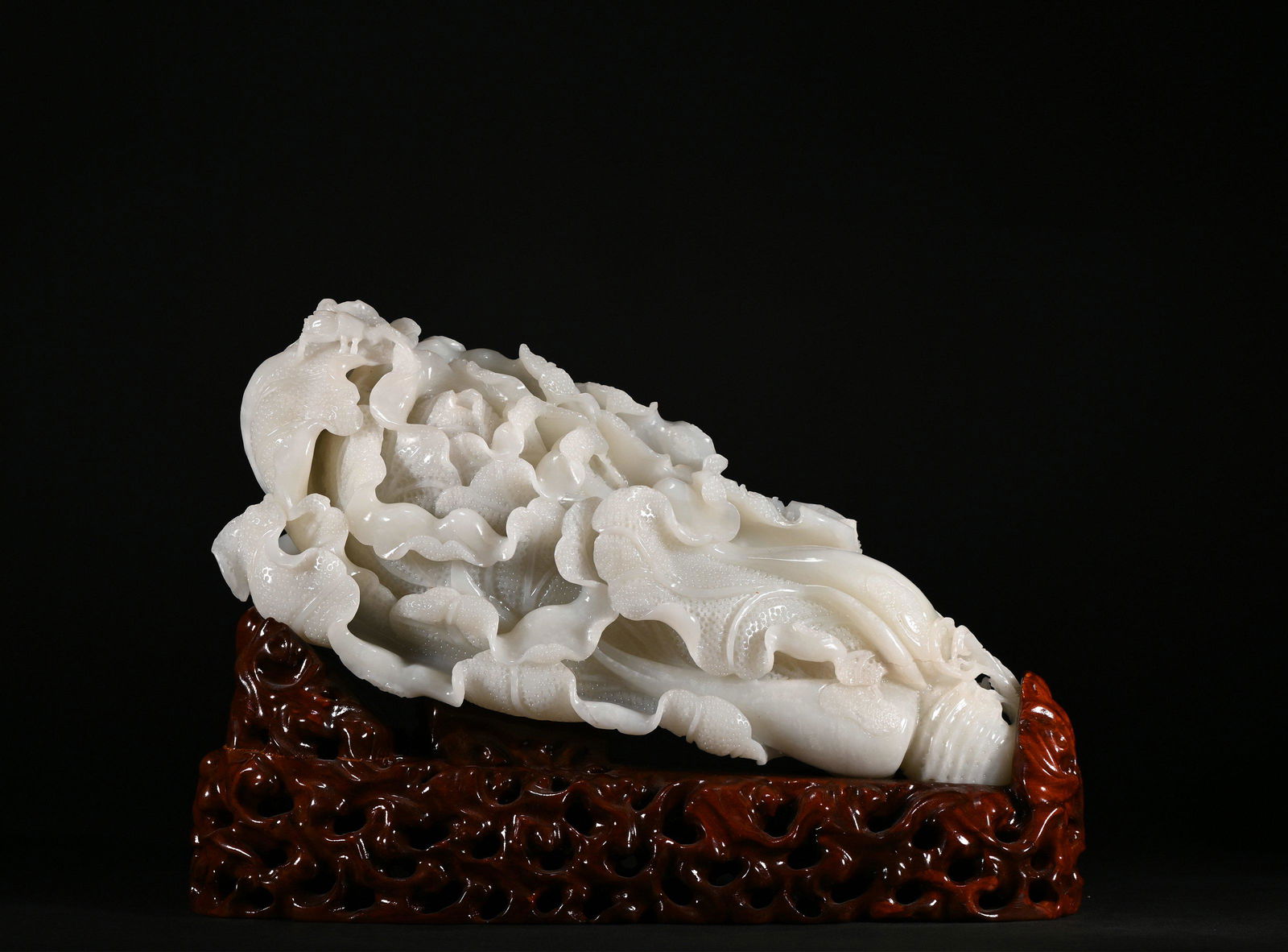 A CARVED WHITE JADE CHINESE CABBAGE PAK CHOI