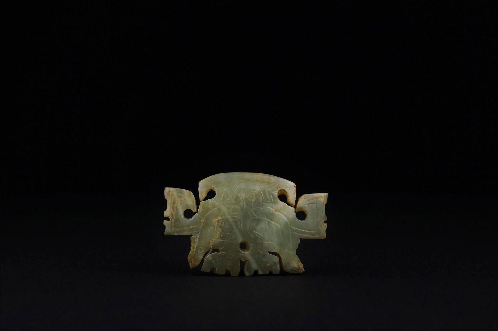 A JADE 'DEMONIC MASK' ORNAMENT
