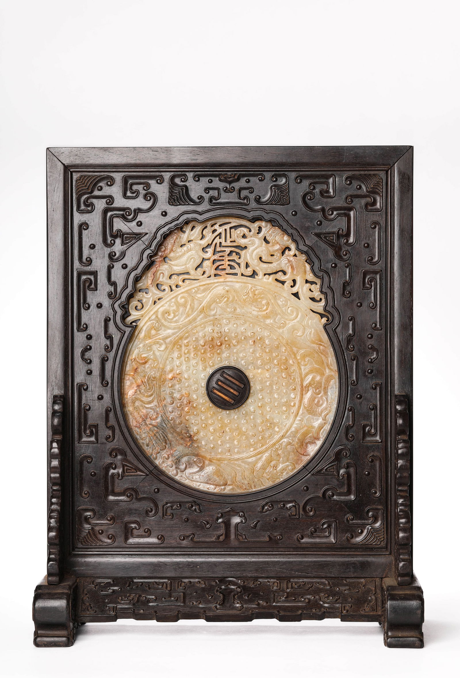 A JADE DISC-INSET TABLE SCREEN