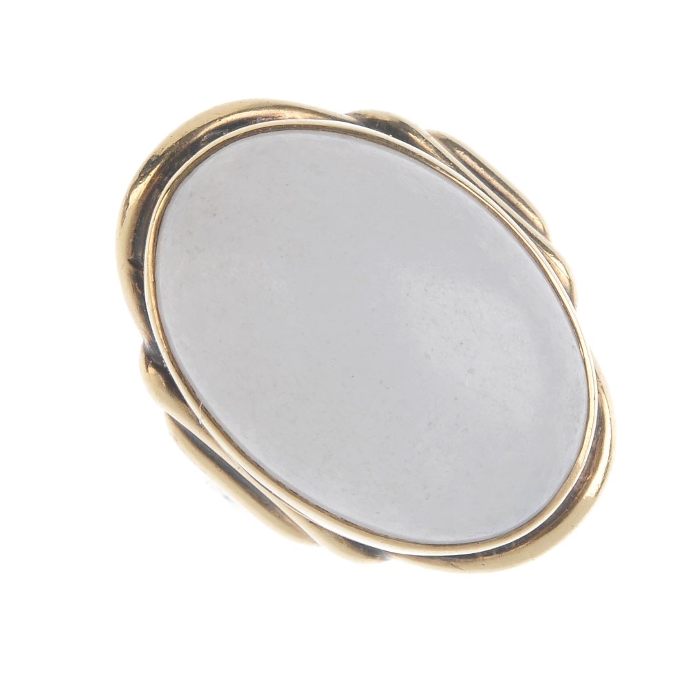 A jade single-stone ring. The oval grey jade cabochon,
