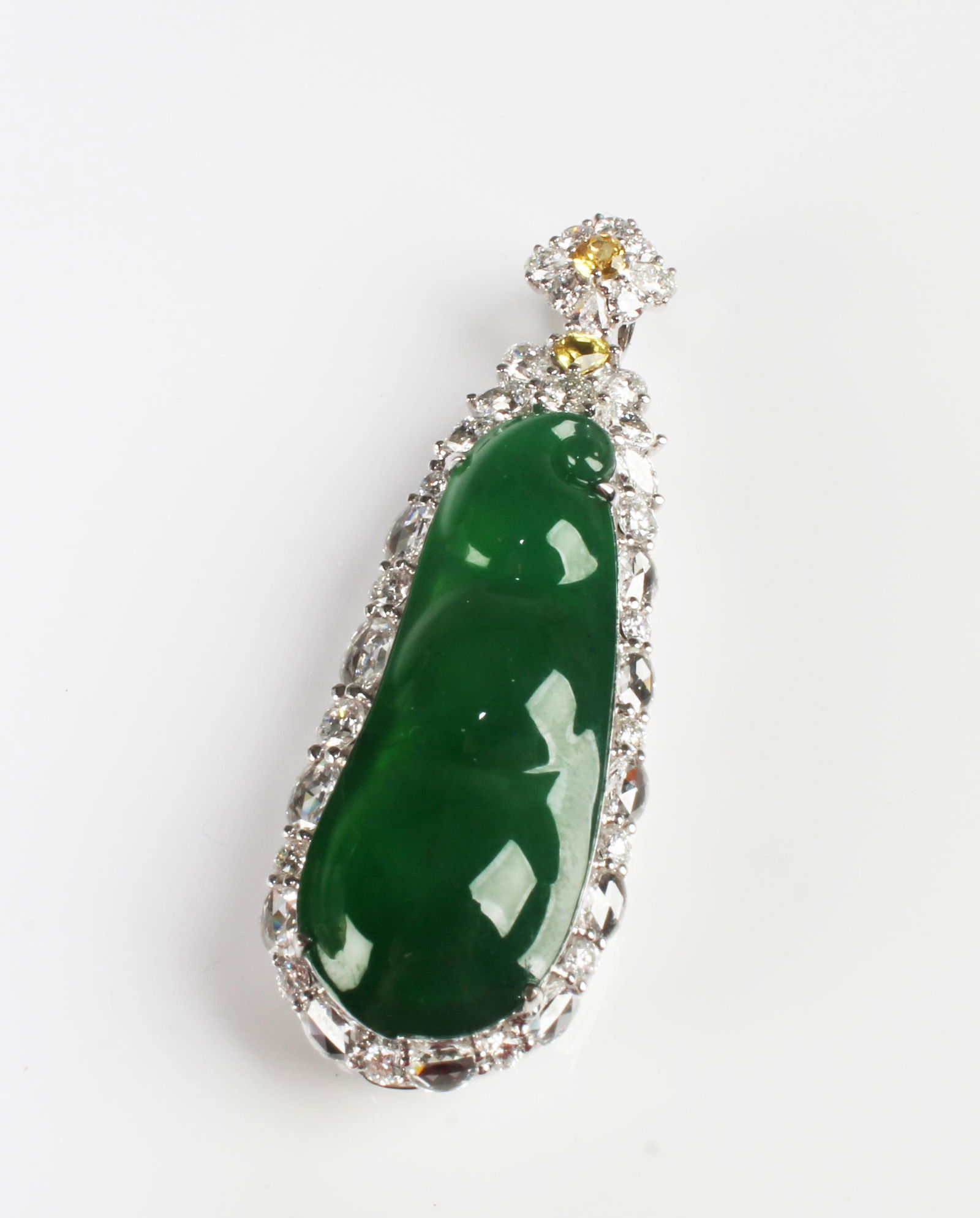 JADEITE, DIAMOND AND PLATINUM PENDANT NECKLACE