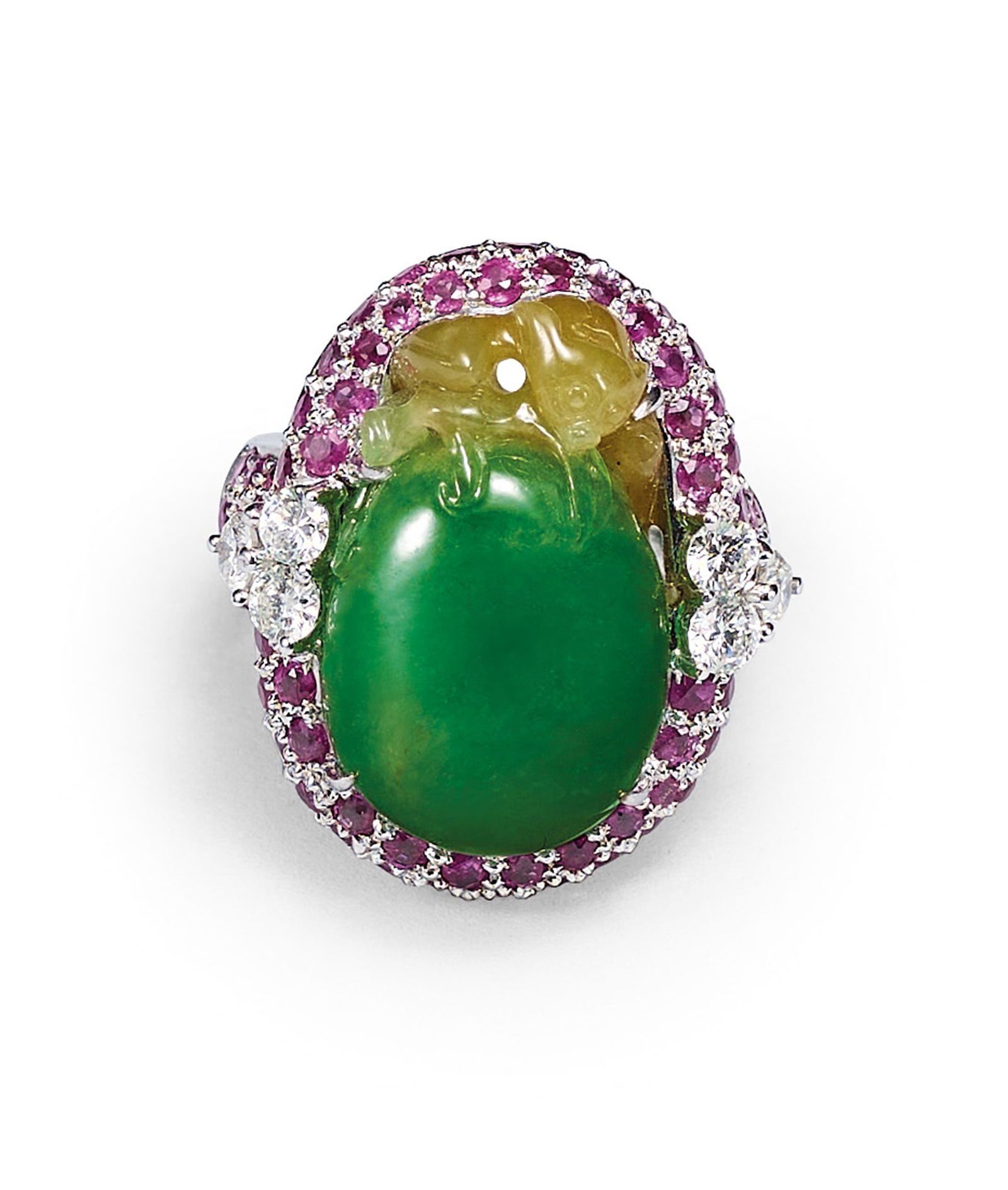 A Jadeite with Diamond 'Dragon' Ring
