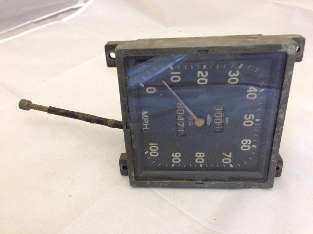 A Jaeger black faced square dial 0-100 mph speedometer.
