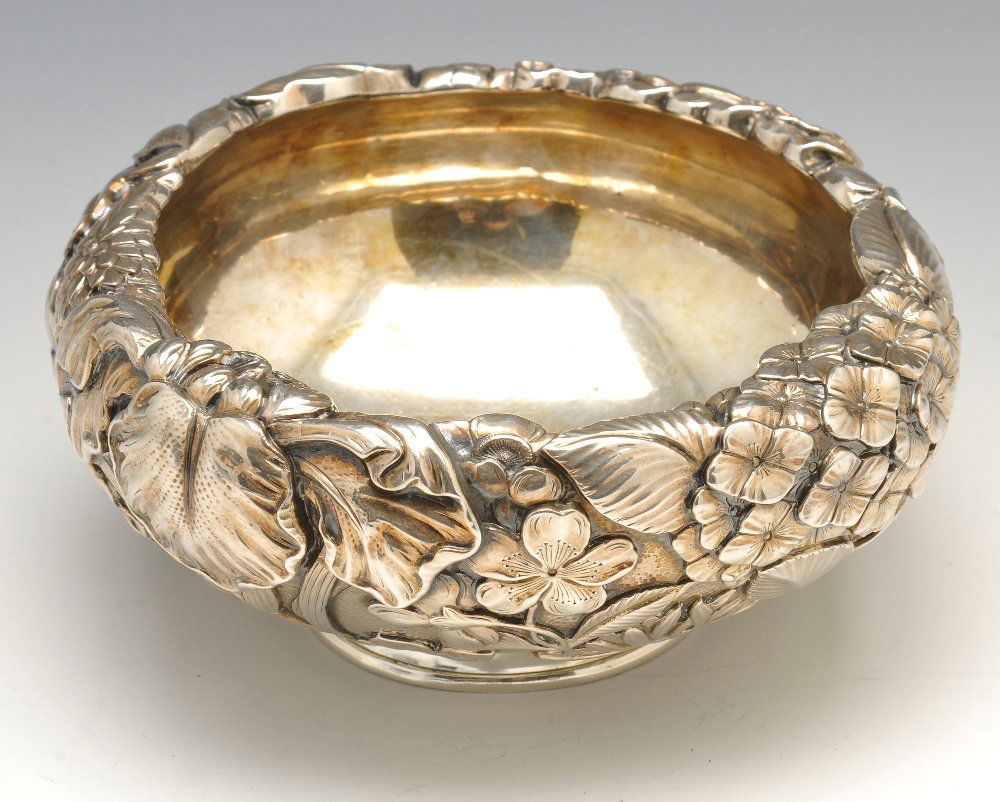 Woshing; Chinese Incised Repousse Silver Bowl
