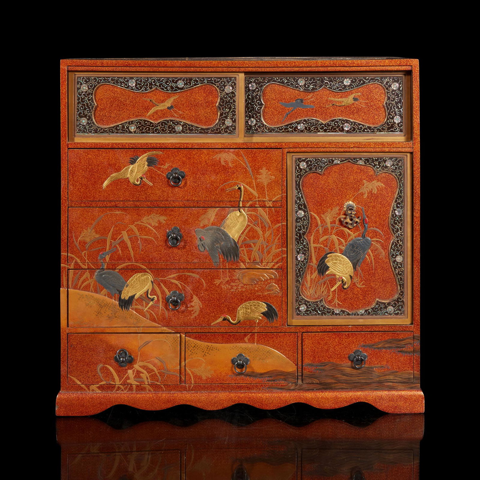 A Japanese lacquered "Cranes" table cabinet 日本漆器小柜