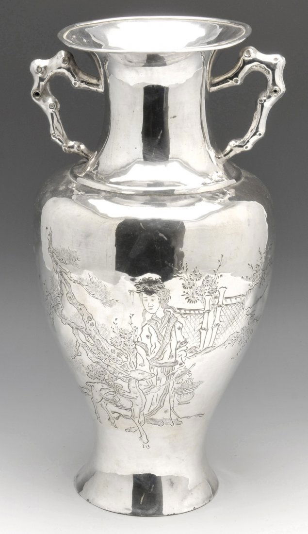 A QINGBAI GLAZED PLUM BLOSSOM VASE, YUAN TO MING DYNASTYMar 11, 2026Tall Hammered Metal Floor VaseFeb 26, 2026English Silverplate Repoussé Coffee UrnMar 07, 2026VINTAGE METAL VASE WITH FLORAL DESIGNMar 01, 2026Japanese Bronze Vase With Twin Fish Ear3 days LeftAmerican Coin Silver Horse Trophy Pitcher6 days LeftChinese Style Baluster Ceramic Vase Sea Flower Design 27HFeb 27, 2026Handmade 925 Sterling Silver Flower Vase with Handles 18 InchesMar 03, 2026Large Handmade 925 Sterling Silver Ornate Flower Vase5 days LeftChinese Famille Rose Porcelain Vase3 days LeftHandmade 925 Sterling Silver Ornate Flower Vase 14.75 Inches1 day LeftElegant Handmade 15.5 Inch 925 Sterling Silver Floral Vase2 days LeftChinese Famille Rose Porcelain Vase3 days LeftHand-Painted Figural Porcelain Vase with Gilt Handles, Signed "J. Leese"Mar 07, 2026Extra Large Italian 800 Silver Handmade Floral Applique Vase 15"2 days LeftPedestal Vase, Two Handles, American Brilliant Cut Glass, Jacqueminot Pattern By PairpointMar 07, 2026