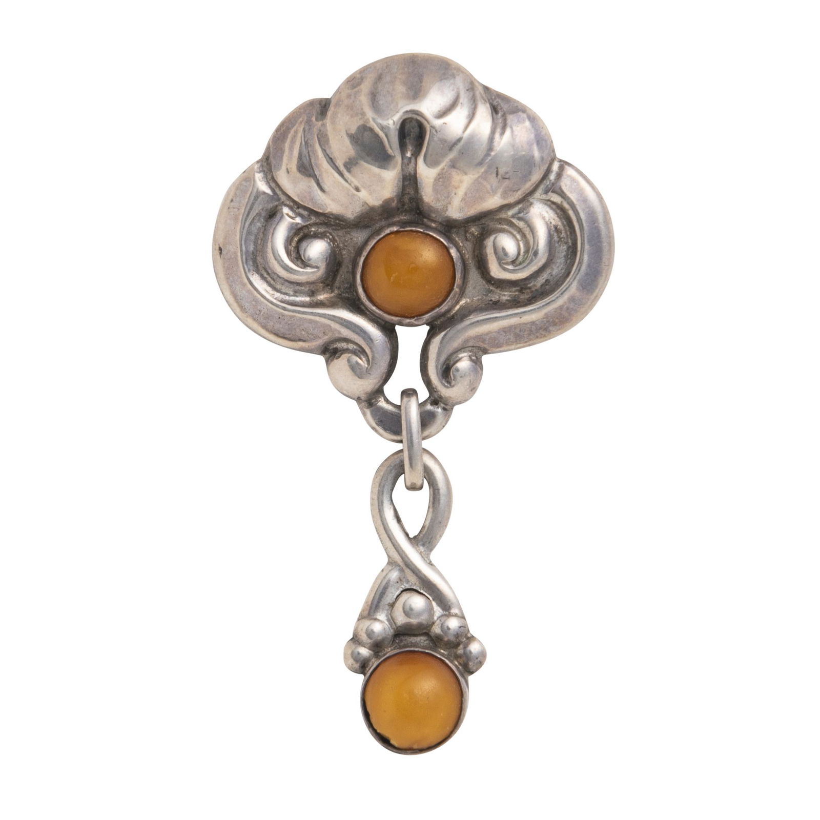 A JUGENDSTIL SILVER AND AMBER BROOCH