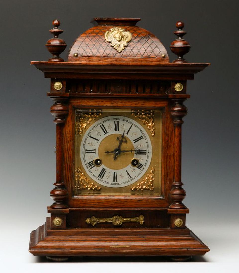A JUNGHANS BRASS MOUNTED OAK BRACKET CLOCK