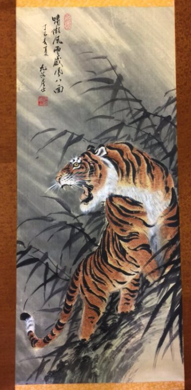 Japanese hanging scroll, known as a kakejiku, featuring a traditional ink painting of a tiger amongBasel Auction House4.5(55)$1506 days Left