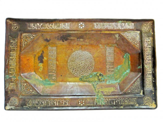 A KHORASAN RECTANGULAR BRONZ SILVER INLAID TRAY 12T