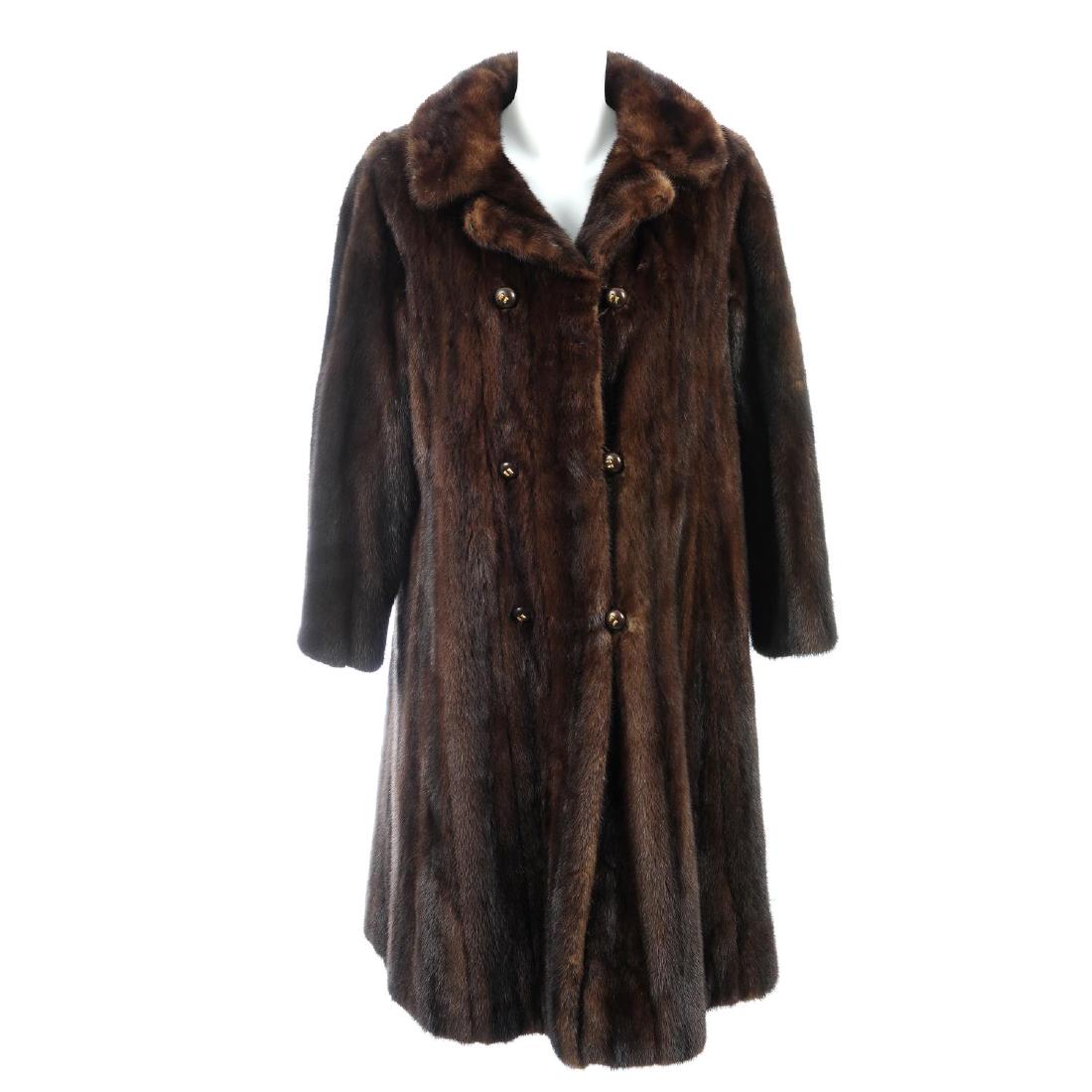 A knee-length ranch mink coat. Featuring a notched