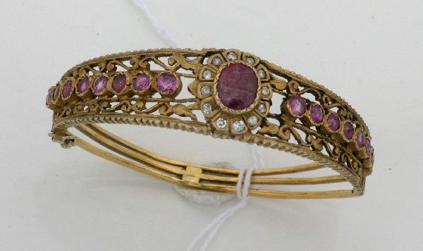 Ruby and Diamond Hinged Bangle Bracelet in 14k Yellow GoldEric's Estate & Jewelry4.6(529)$2,10038 mins Left