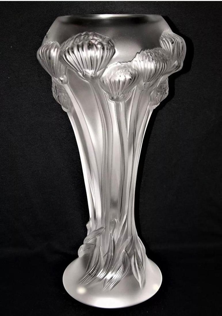 A Lalique Rose Crystal Vase, Signed