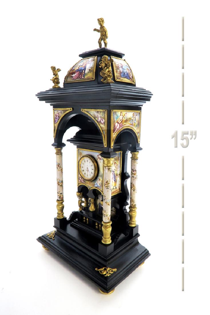 SoldA Large 19th C. Viennese/Austrian Enamel ClockA Large 19th C. Viennese/Austrian Enamel Clock. 7" x 4" x H 15"See Sold Price