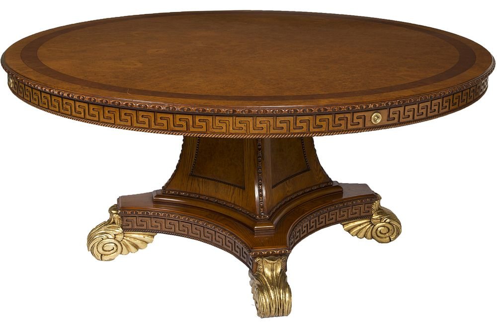 Vintage Chippendale Style Pie Crust Tilt Top Table by Kindel Furniture Co.WILLIAM SWITZER CUSTOM OVAL OYSTER WALNUT DINING TABLEFeb 22, 2026Regency Style Mahogany Circular Dining TableMar 05, 2026An Anglo-Indian mid 19th century padouk circular centre or dining table 1840-1860Carved Clawfoot Wooden Pedestal TableFeb 21, 2026Empire Style Mahogany Library Table with Inlaid Banded Border Model 76-0126 days LeftMaitland Smith Figural Mahogany Center Table with Carved Scalloped Edge10 hrs LeftNeoclassical Side Table with Inlaid Wood by Baggio AnnicoFeb 21, 2026REGENCY STYLE BRASS-INLAID ROSEWOOD & MAHOGANY CENTER TABLEFeb 22, 2026Mahogany Pedestal Dining Table with Banded Oval TopFeb 17, 2026ORMOLU-MOUNTED MARQUETRY OCCASIONAL TABLEFeb 22, 2026Louis XV Style Kingwood Marble Bouillotte TableMar 19, 2026Federal Style Banded Mahogany Dining Room Table4 days LeftSatinwood Games Table in Adams Style from Stately Homes CollectionFeb 08, 2026Mahogany Pedestal Center Table with Brass Accents by LexingtonFeb 16, 2026Chippendale Baker Mahogany Round Tilt Top Table5 days Left