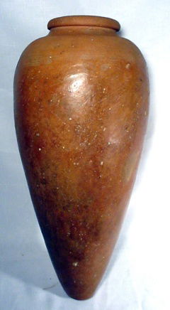 A large burnished red-ware storage jar.