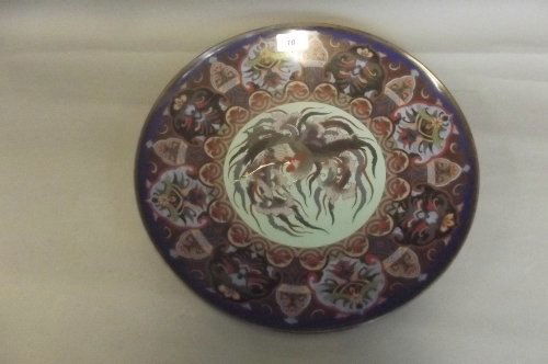 A large C19th cloisonné charger with a central phoenix,