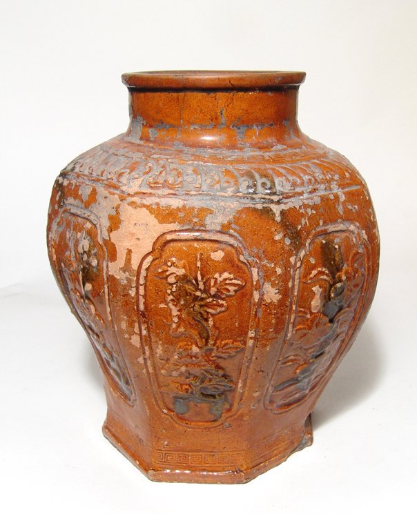 A large Chinese amber-glazed jar